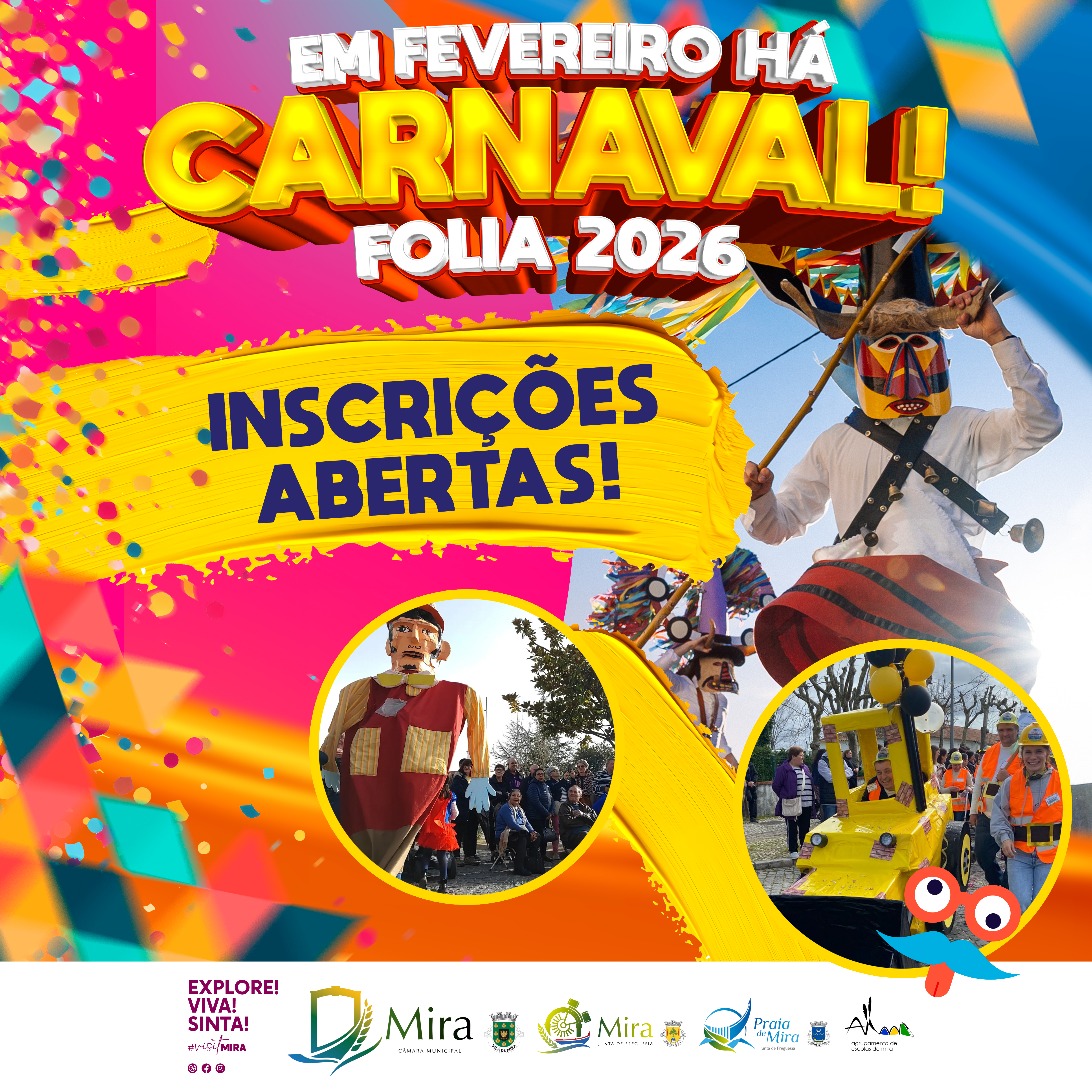 A Folia do Carnaval 2026 está de regresso a Mira e as inscrições já estão abertas para associações, grupos e foliões que queiram encher as nossas ruas de cor, alegria e criatividade.