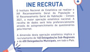 O Município de Mira informa que o Instituto Nacional de Estatística (INE) está a recrutar delegados municipais e sub-regionais para colaborar no Recenseamento Geral da População