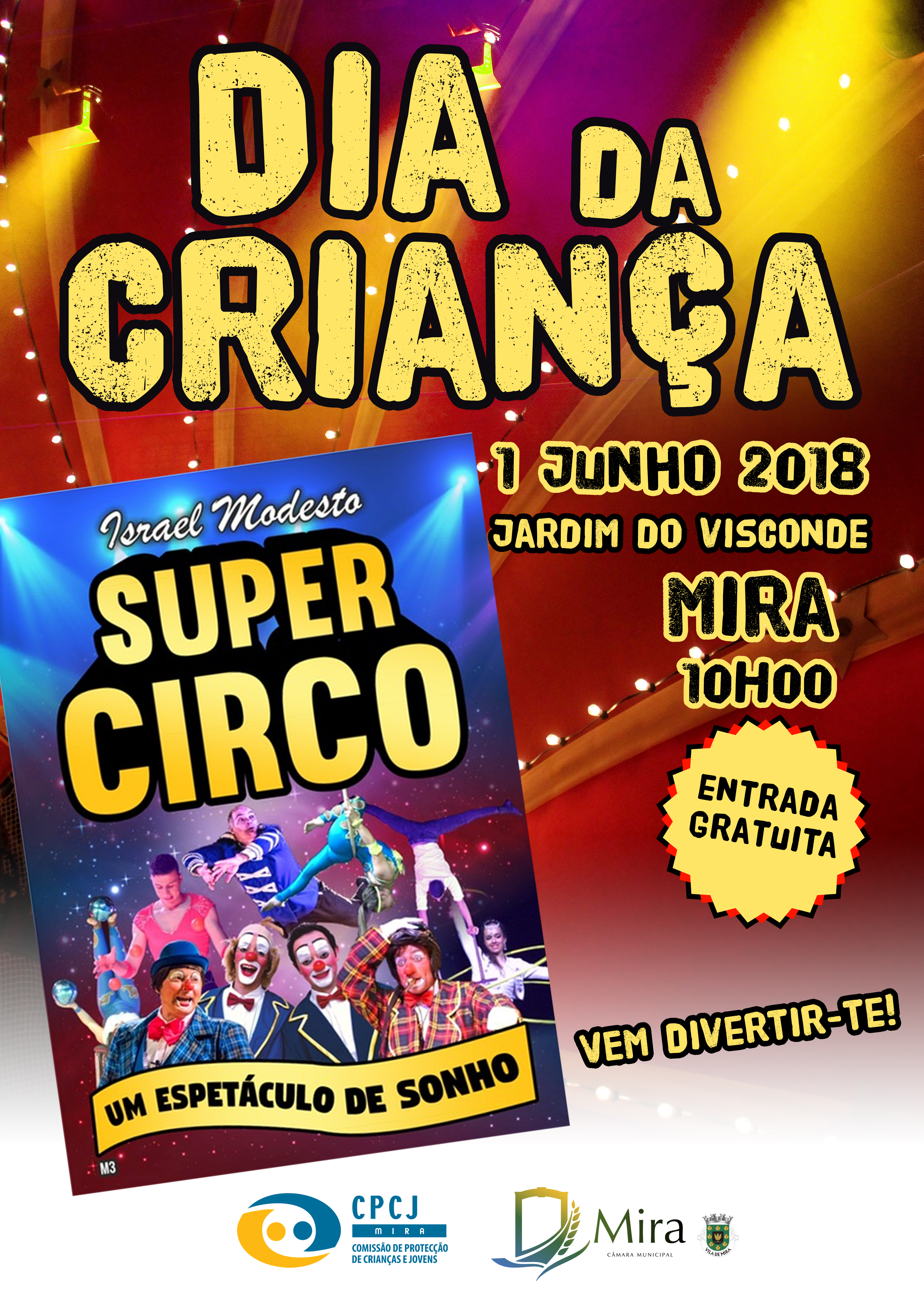 As crianças do concelho de Mira, em especial as do Agrupamento de Escolas de Mira e os utentes das Instituições Particulares de Solidariedade Social, serão brindados com espetáculos de circo, na próxima sexta-feira, dia 1 de junho, pelas 10 horas, como forma de comemorar o Dia Mundial da Criança, no Jardim do Visconde, em Mira. A atividade é organizada pela CPCJ de Mira, em parceria com o Município de Mira.