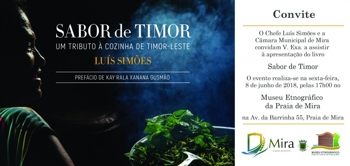 No próximo dia 8 de junho pelas 17h00, será apresentado o livro “Sabor de Timor - Um Tributo à Cozinha de Timor Leste” da autoria do Chef Luís Simões, no Museu Etnográfico e Posto de Turismo da Praia de Mira.