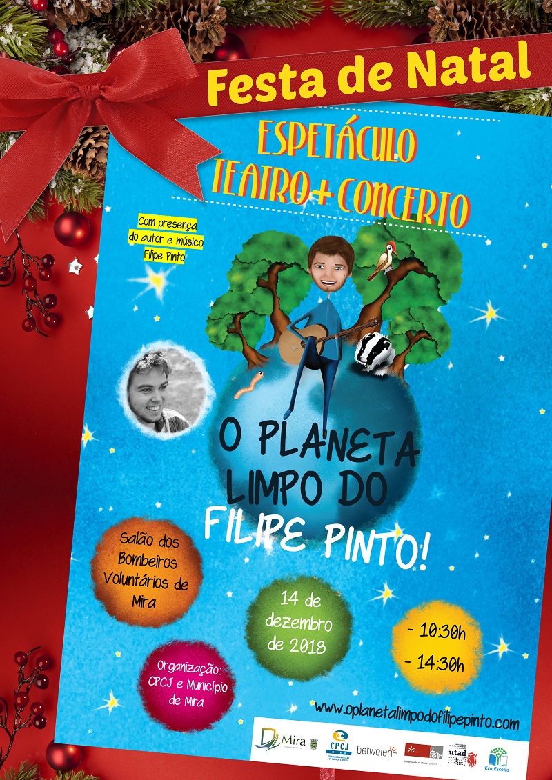 A Câmara Municipal de Mira, em parceria com a CPCJ de Mira irá proporcionar duas sessões do espetáculo “O Planeta Limpo do Filipe Pinto”, na Festa de Natal destinada para os alunos do Agrupamento de Escolas e IPSS’s do concelho.