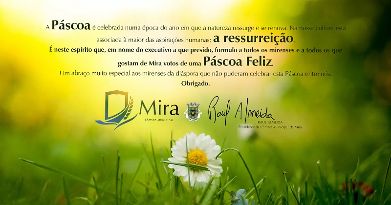 É neste espírito que, em nome do executivo a que presido, formulo a todos os mirenses e a todos os que gostam de Mira votos de uma Páscoa Feliz.