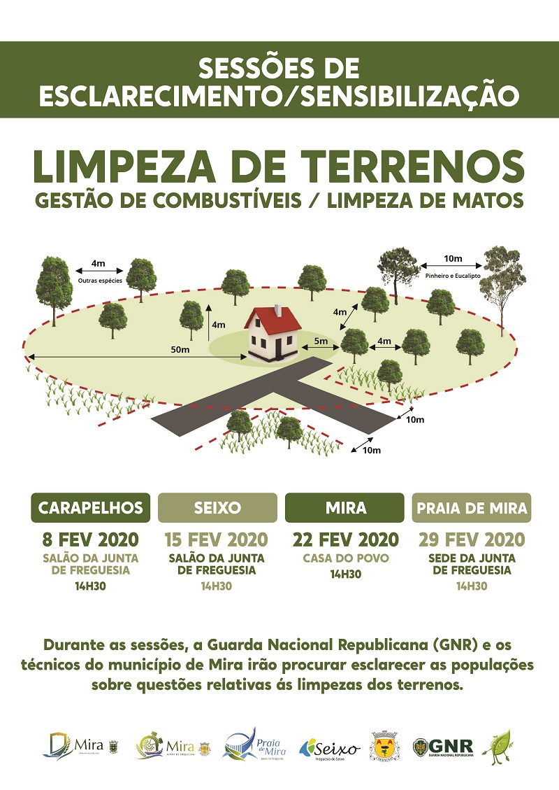 Durante as sessões, a Guarda Nacional Republicana (GNR) e os técnicos do município de Mira irão procurar esclarecer as populações sobre as novas regras que o Governo aprovou recentemente para a limpeza dos terrenos.