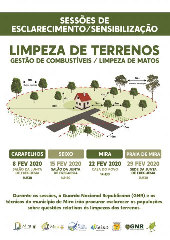 O Município de Mira juntamente com as Juntas de Freguesia vai promover nas respetivas freguesias do concelho, novas sessões de esclarecimento/sensibilização, relativas à Gestão de Combustíveis / limpeza de matos.