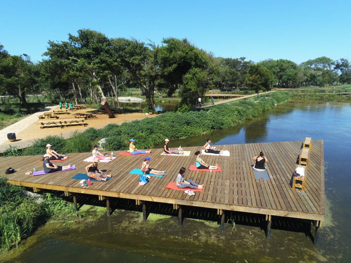Integrada na programação anual das atividades de educação ambiental do Programa Bandeira Azul (BA) da Praia de Mira e da Praia do Poço da Cruz, decorreu uma sessão de ioga, nos passadiços dos viveiros piscícolas, durante a manhã de 17 de julho de 2020.