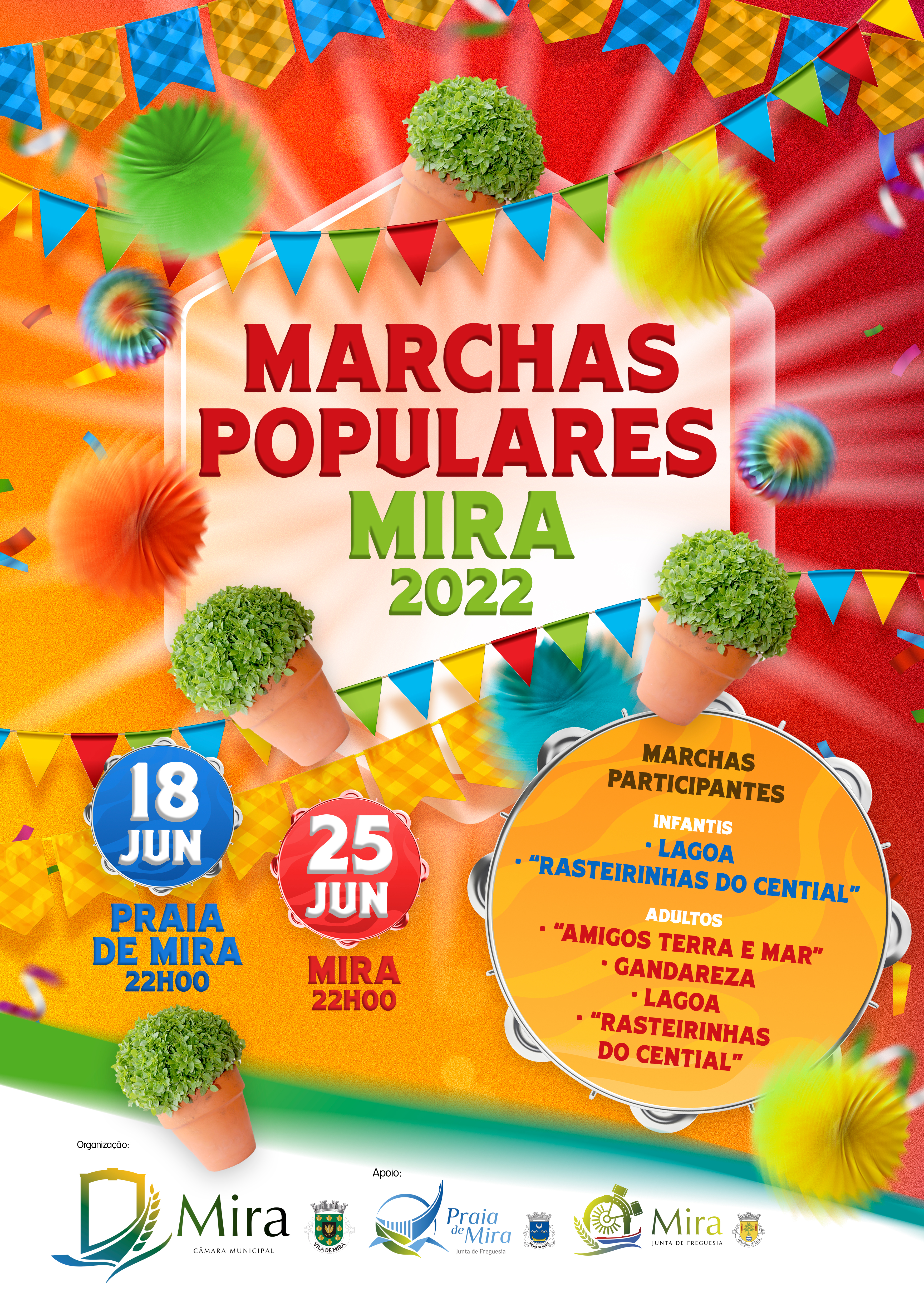 O Município de Mira, renova este ano o apoio à realização das Marchas Populares, parte integrante do calendário de eventos do Município desde o ano de 2002, mas que foi interrompido nos últimos 2 anos devido à pandemia Covid19.