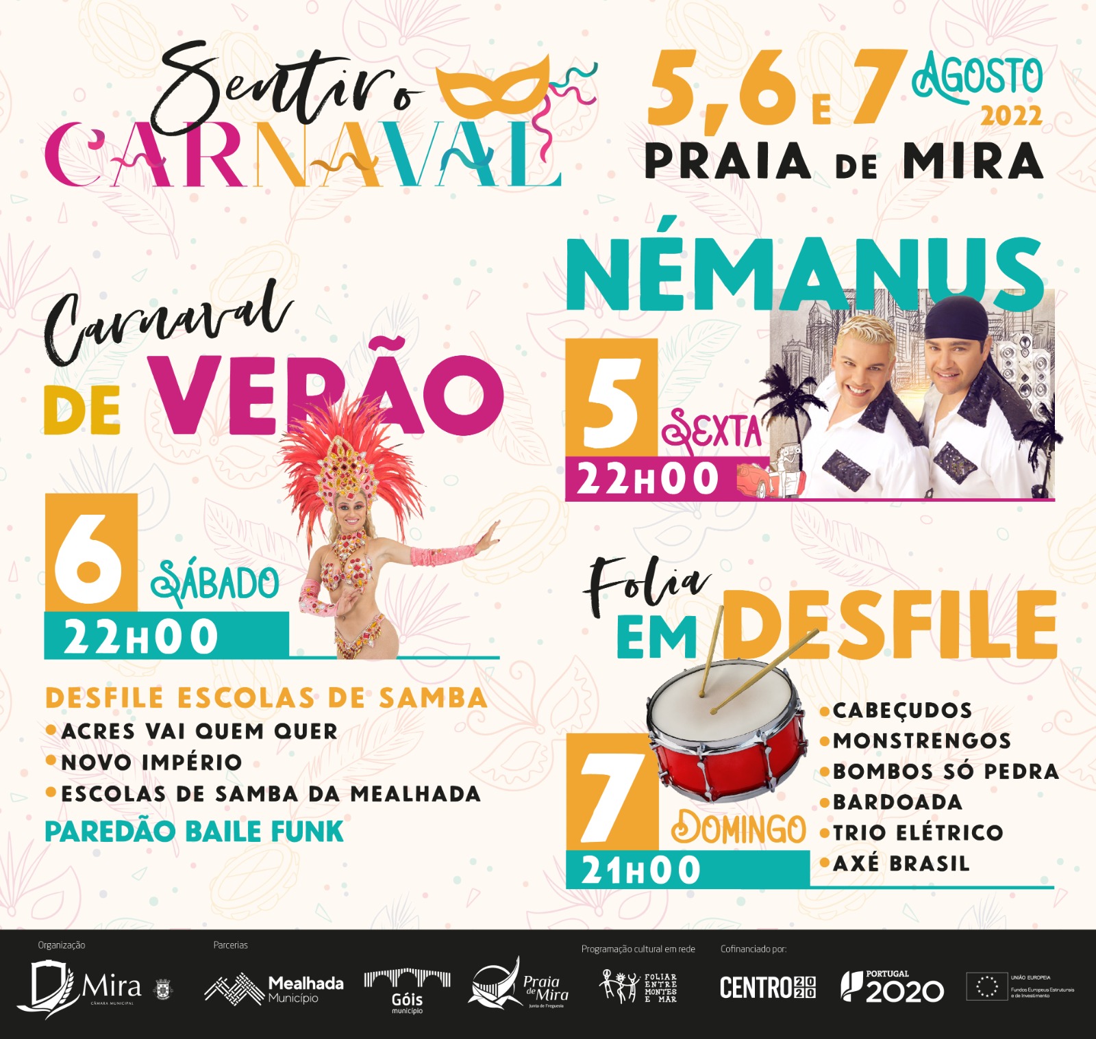 É com o mote “Sentir o Carnaval” que a Praia de Mira vai viver três dias de muita folia (5, 6 e 7 de agosto).