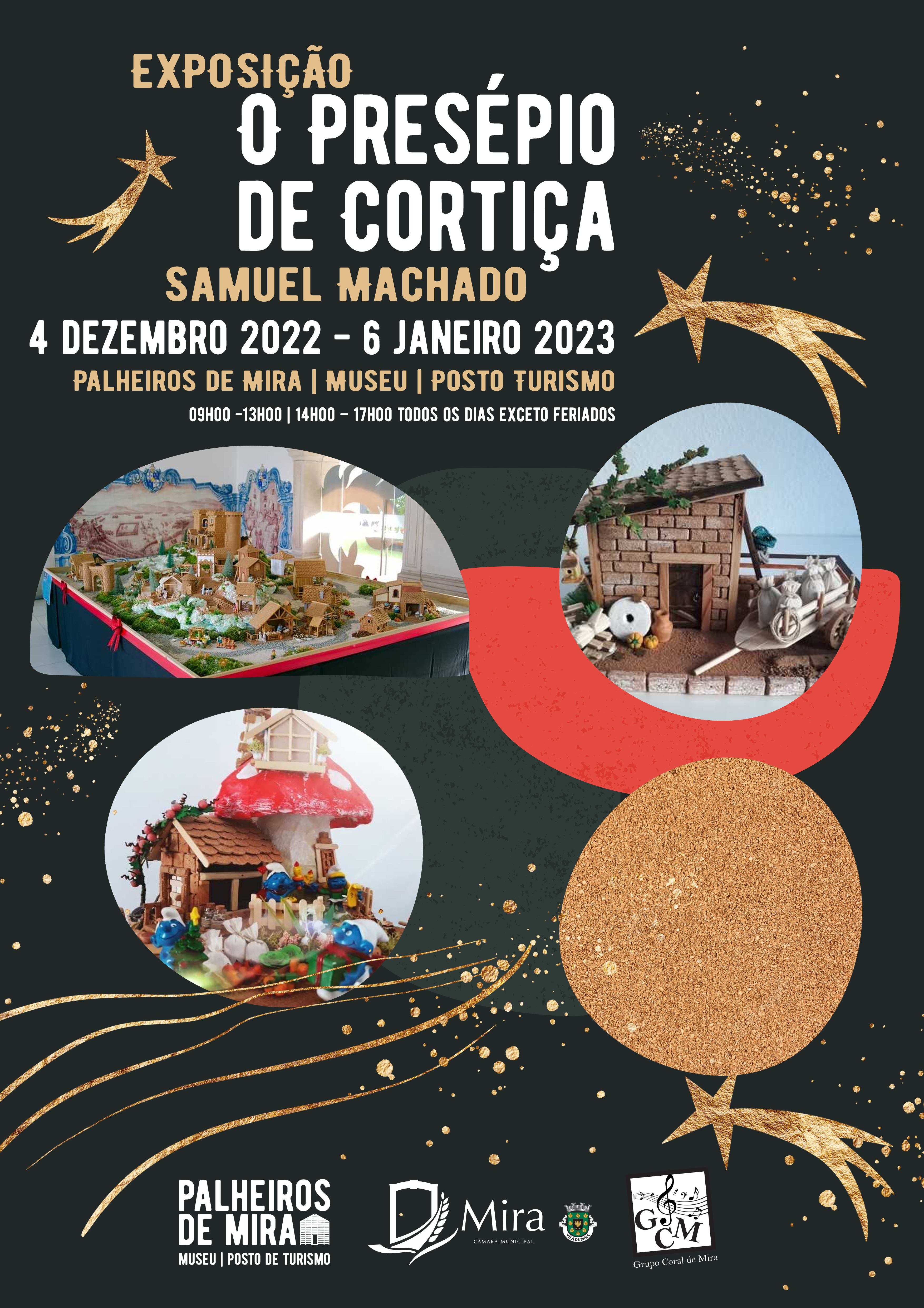 O presépio de Cortiça, da autoria de Samuel Machado, irá estar patente no Palheiros de Mira - Museu e Posto de Turismo da Praia de Mira, entre 4 de Dezembro 2022 e 6 de janeiro de 2023 e conta com a parceria do Grupo Coral de Mira.