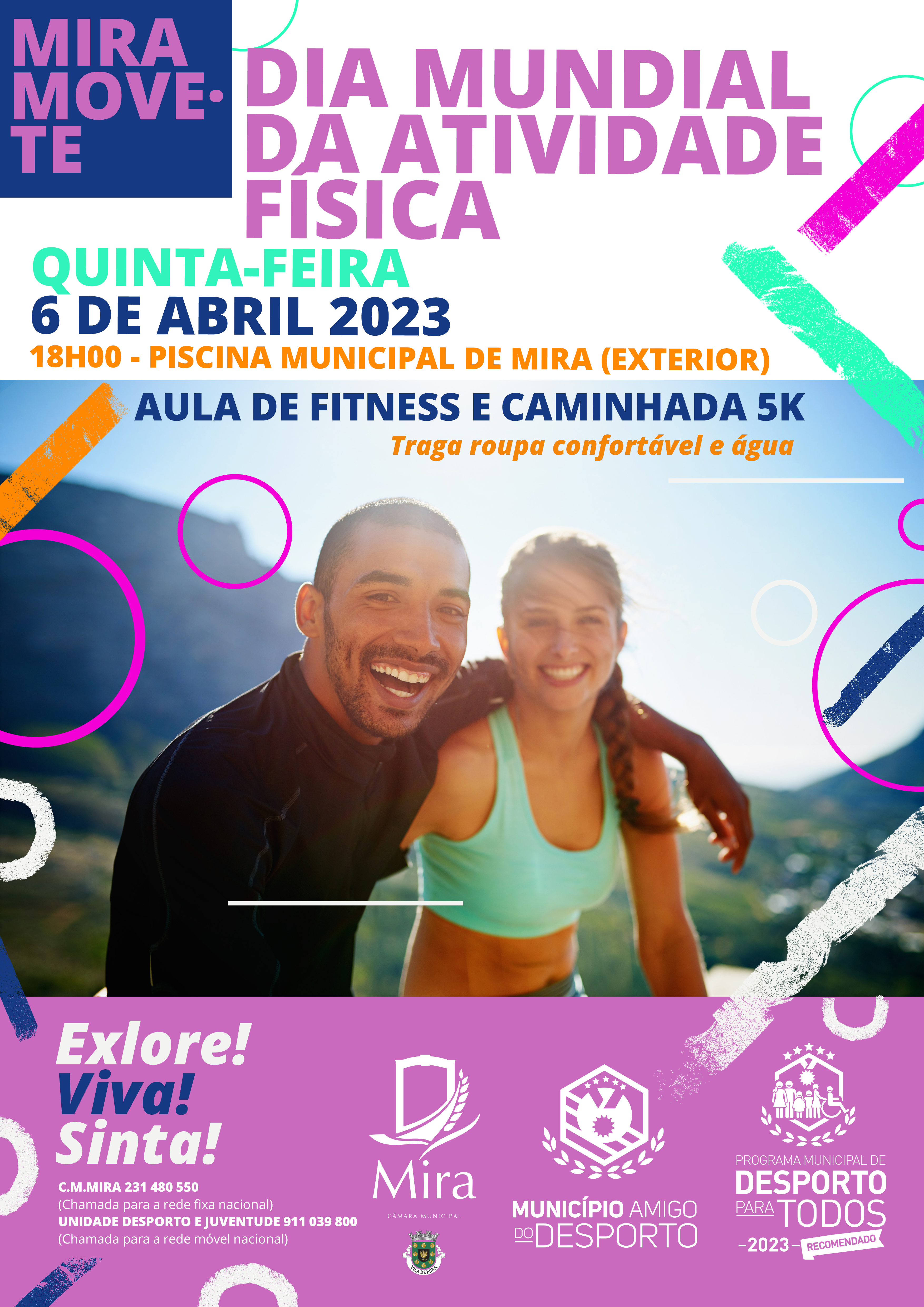 Na próxima quinta-feira, dia 6 de abril, o Município de Mira assinala o Dia Mundial da Atividade Física, com um conjunto de atividades gratuitas, visando a promoção da prática de atividade física e os seus benefícios.