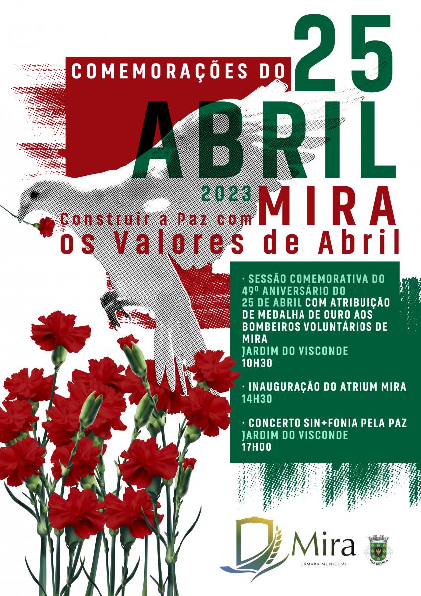 No dia em que se comemoram 49 anos de Liberdade, o Município de Mira, vai prestar homenagem à Associação Humanitária dos Bombeiros Voluntários de Mira, com atribuição da Medalha de Ouro Municipal, por serviços considerados excecionais em prol dos Mirenses.