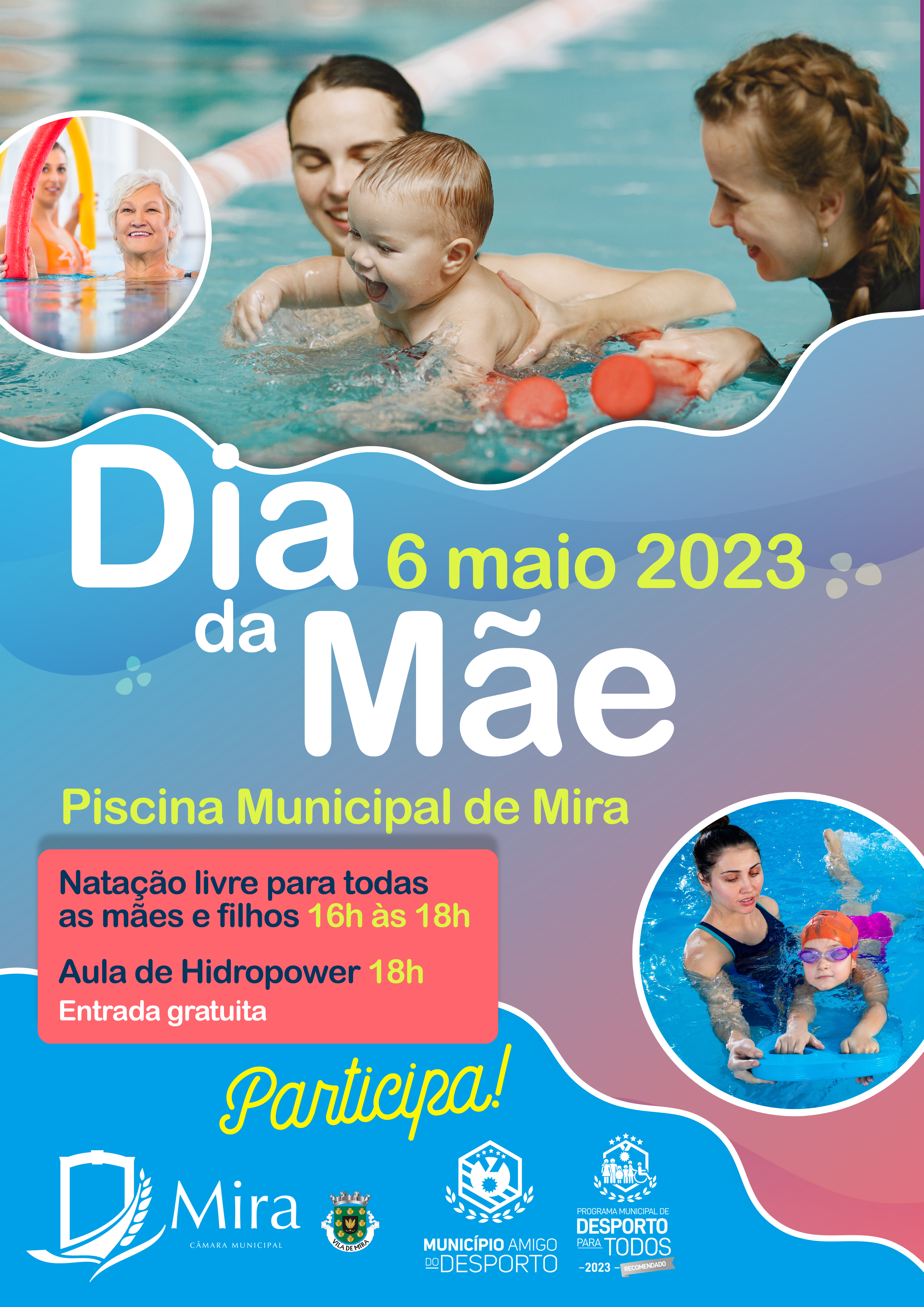 A Câmara Municipal de Mira assinala o Dia da Mãe, na Piscina Municipal, com uma tarde de atividades em regime de utilização livre, para todas as mães que pretendam acompanhar os(as) seu(a)s filhos(as).