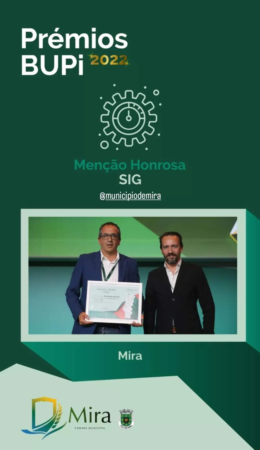 O Município de Mira foi distinguido com “menção honrosa” de reconhecimento pelas boas práticas implementadas pelos técnicos no município na utilização do Sistema de Informação Geográfica (SIG), ao serviço do BUPI.