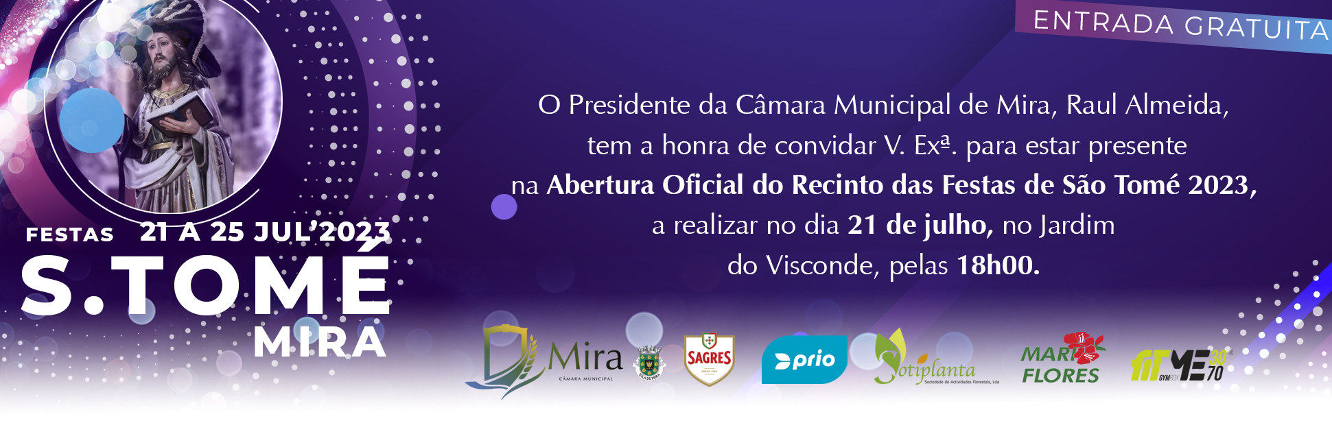 Convidamos todos a estarem presentes na Abertura Oficial do Recinto das Festas de São Tomé 2023, dia 21 de julho, no Jardim do Visconde, pelas 18h00.