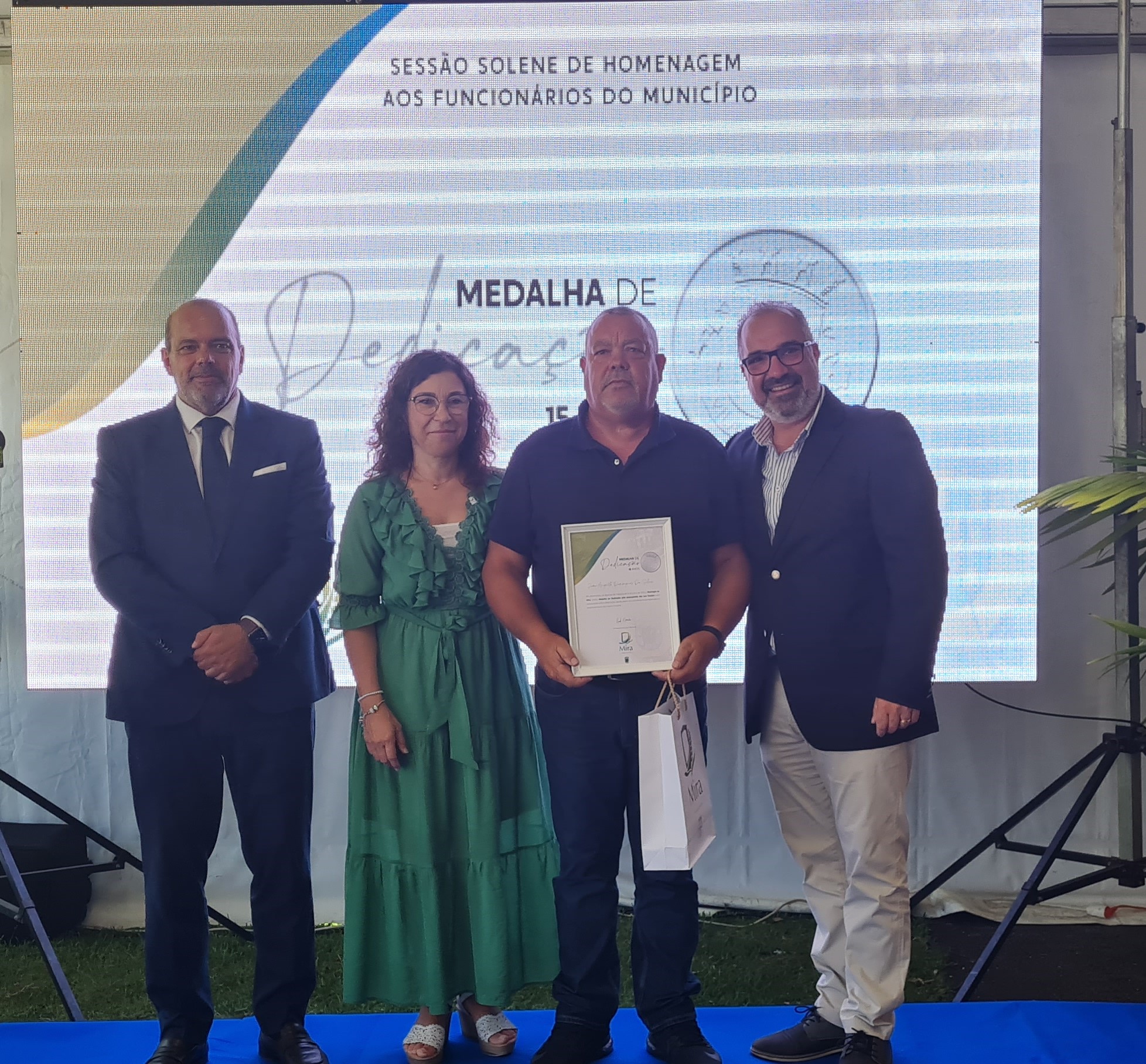 O momento de reconhecimento público dos 98 trabalhadores homenageados, incluiu a atribuição da medalha de “Dedicação” por 15, 25 e 35 anos, símbolo do justo reconhecimento público que a atribuição de uma distinção honorífica atribui ao homenageado.