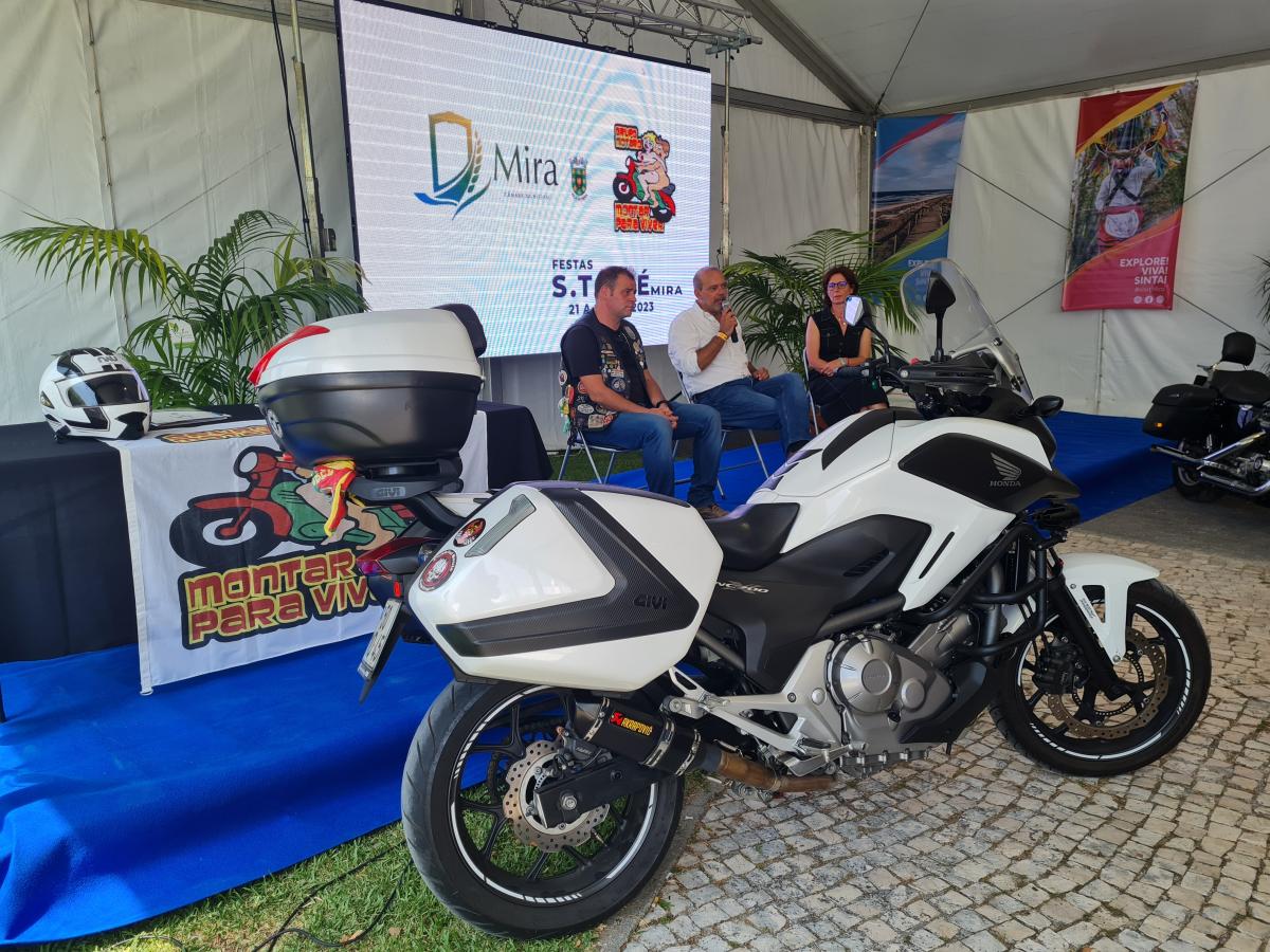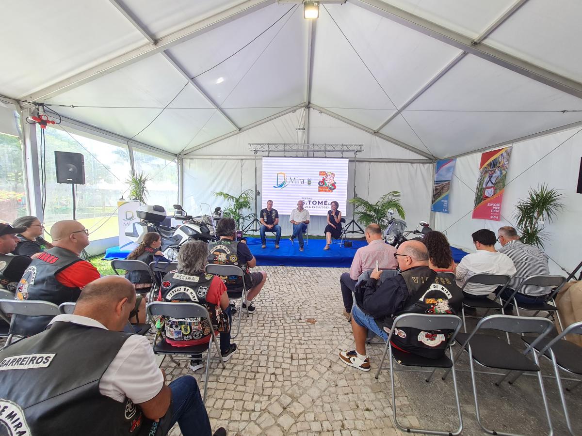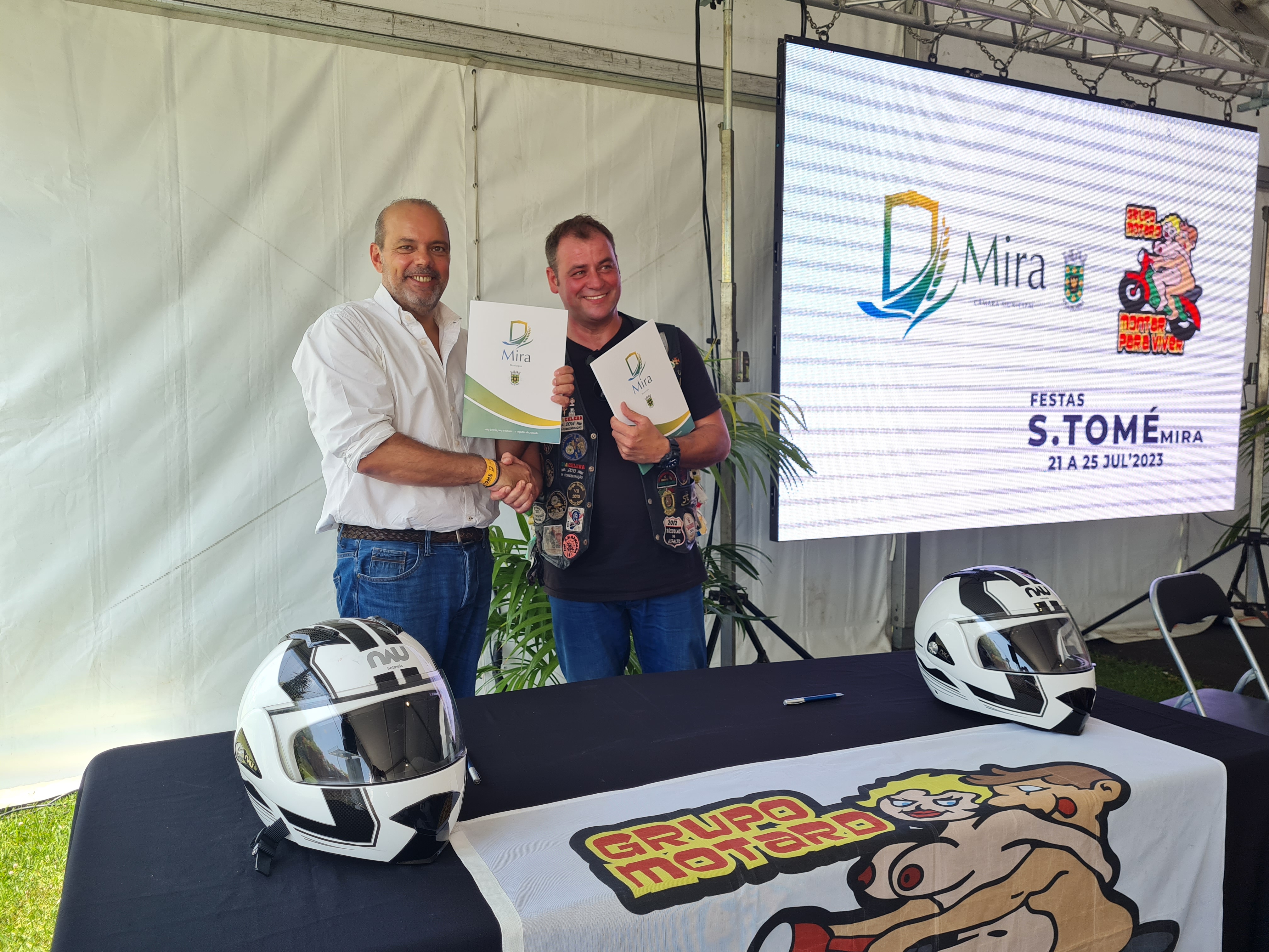 Presentes estiveram os senhores vereadores do município a presidente de junta dos Carapelhos, Carla Santos e vários membros do grupo motard. A cerimónia informal decorreu na tenda institucional do município, instalada no jardim do Visconde durante as Festas de São Tomé 2023.