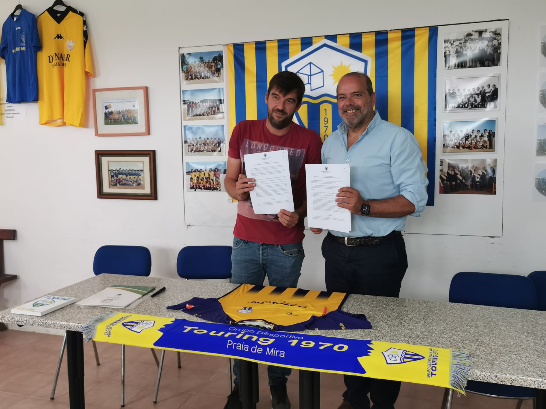 O Presidente da câmara Municipal de Mira, Raul Almeida e o Presidente do Grupo Desportivo da Praia de Mira – Touring 1970, Pedro Cambraia, assinaram ontem, no Campo Lago do Mar, um Contrato-Programa de apoio do município àquele clube da Praia de Mira.