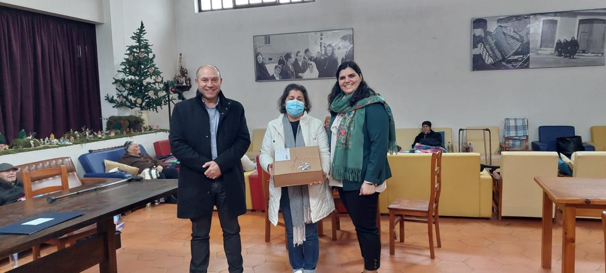 O Presidente da Câmara Municipal de Mira, Artur Fresco, e a vereadora da Ação Social, Adriana Sousa, entregaram, na passada semana, presentes de Natal aos responsáveis de 7 Instituições Particulares de Solidariedade Social (IPSS) do concelho de Mira, que têm nas suas valências ERPI – Estrutura Residencial para Idosos, Centro de dia e SAD – Serviço de Apoio ao Domicílio, centro de acolhimento de crianças e jovens em risco e Centro de Atividades e Capacitação para a Inclusão.