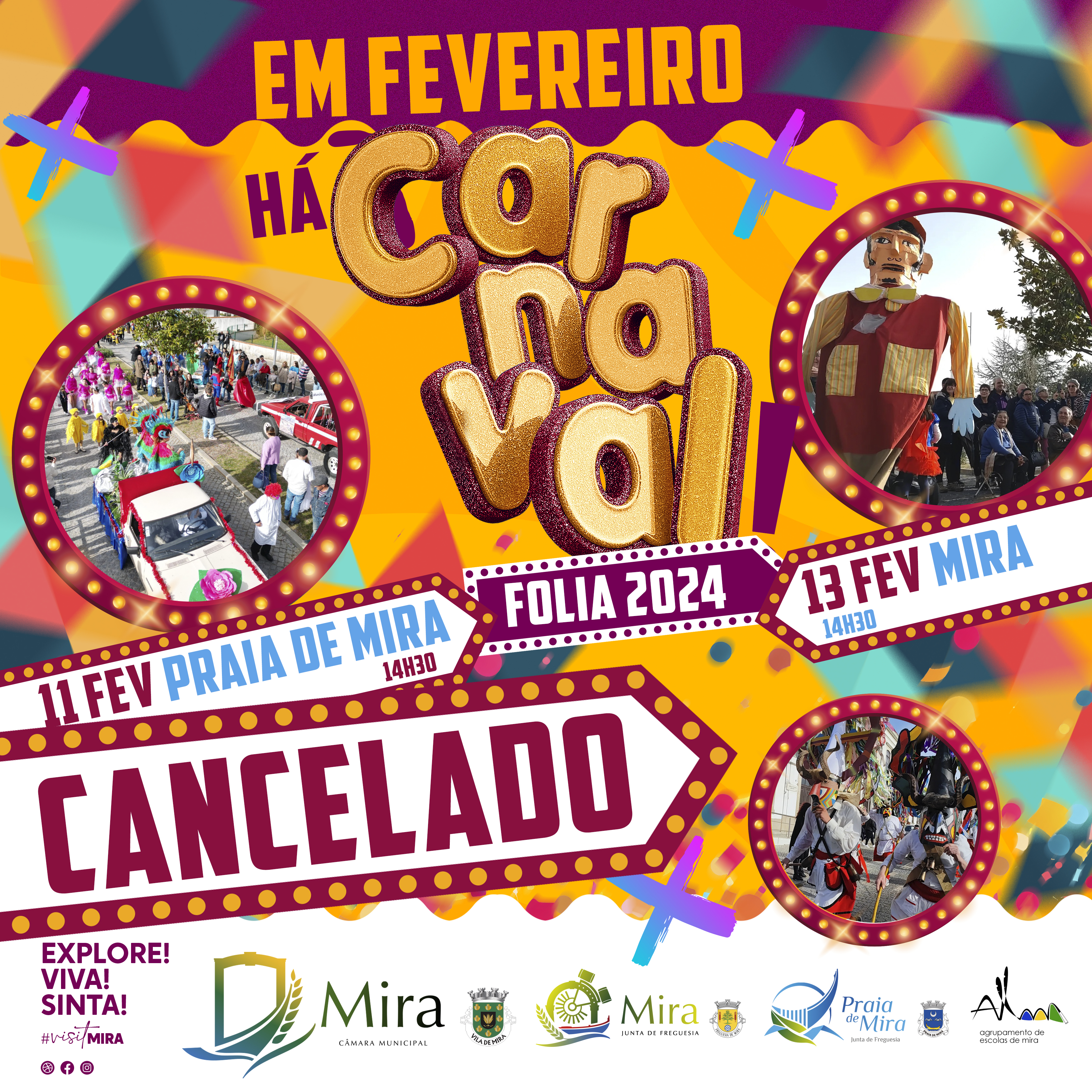 Segundo o Presidente da câmara Municipal de Mira, Artur Fresco, “as previsões meteorológicas indicam a ocorrência de chuvas intensas e ventos fortes, que podem comprometer a integridade dos desfiles. A nossa prioridade é a segurança de todos os envolvidos, e a decisão de cancelar os festejos visa evitar possíveis riscos e contratempos. Pedimos a compreensão de todos os envolvidos, participantes e visitantes, e agradecemos antecipadamente pela colaboração e compreensão diante desta decisão.”