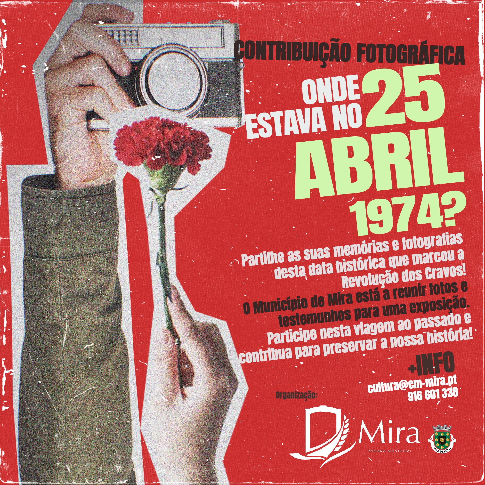 O Município de Mira lançou uma iniciativa para comemorar os 50 anos da Revolução dos Cravos. Sob o lema "Imagens que contam 50 anos de Abril", a autarquia convida os cidadãos a partilharem as suas memórias e fotos do 25 de abril de 1974, para posterior exposição.