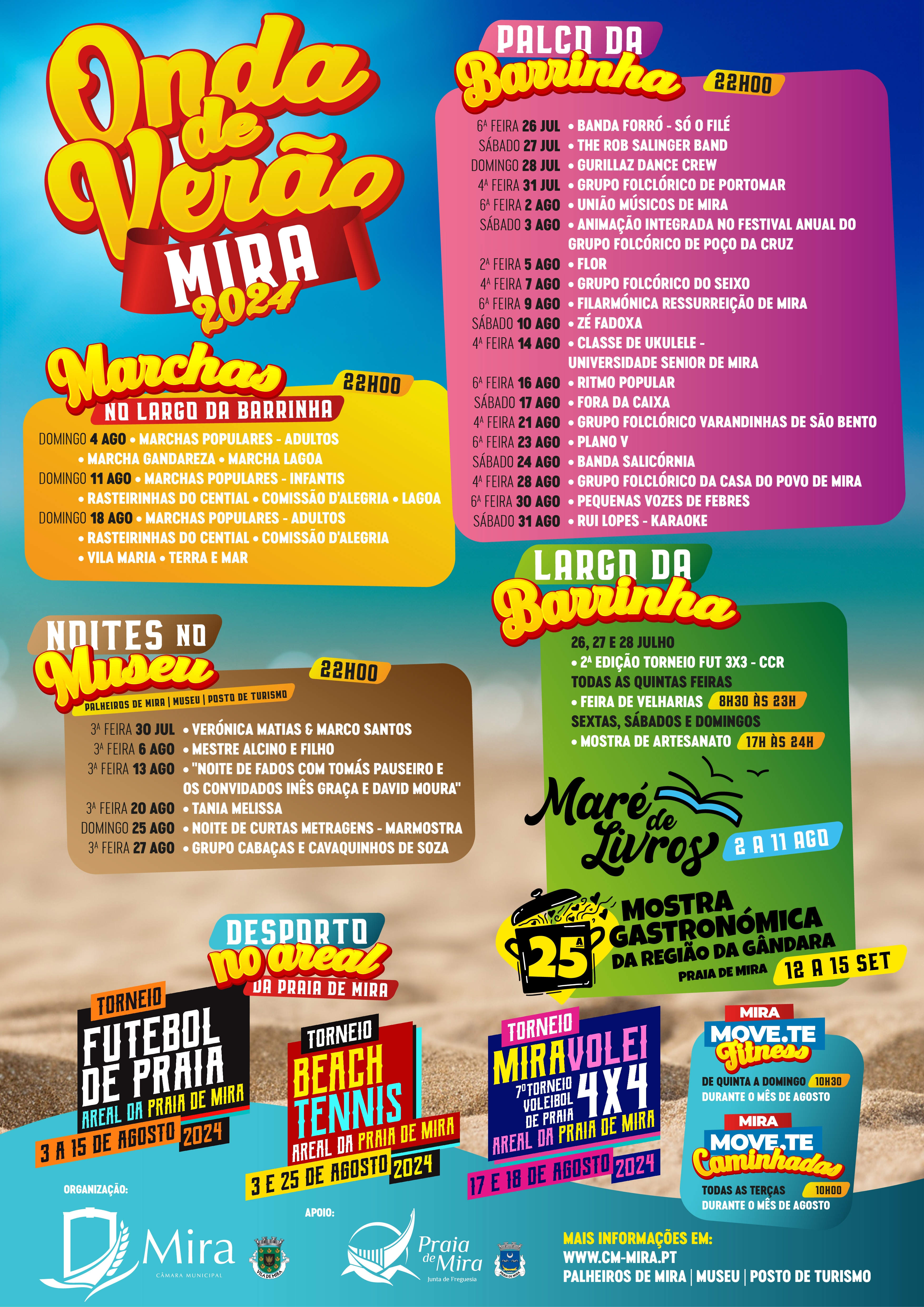 Este verão, a Praia de Mira será o epicentro da animação com o programa "Onda de Verão" 2024. O Largo da Barrinha, o Museu e Posto de Turismo, assim como a Biblioteca de Praia e a área desportiva do areal, serão os palcos deste evento.