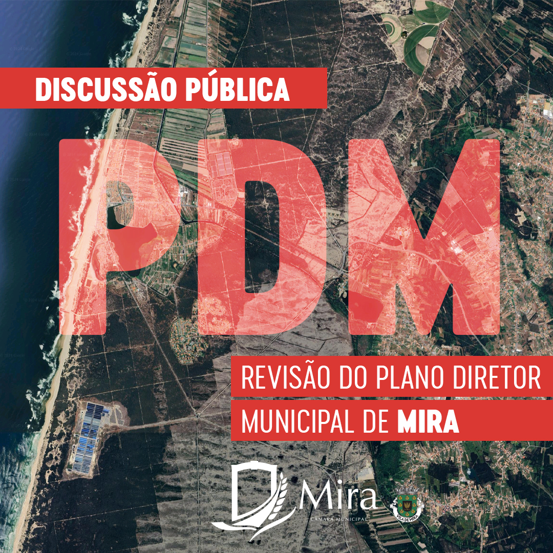 A Câmara Municipal de Mira informa que, na sua reunião ordinária de 14 de agosto de 2024, foi deliberado por unanimidade dar início ao período de discussão pública da Revisão do Plano Diretor Municipal de Mira (PDM). Esta decisão é tomada nos termos legais do n.º 1 do artigo 89.º do Decreto-Lei n.º 80/2015, de 14 de maio, conjugado com o disposto no n.º 2 do artigo 89.º e na alínea a) do n.º 4 do artigo 191.º do mesmo diploma.