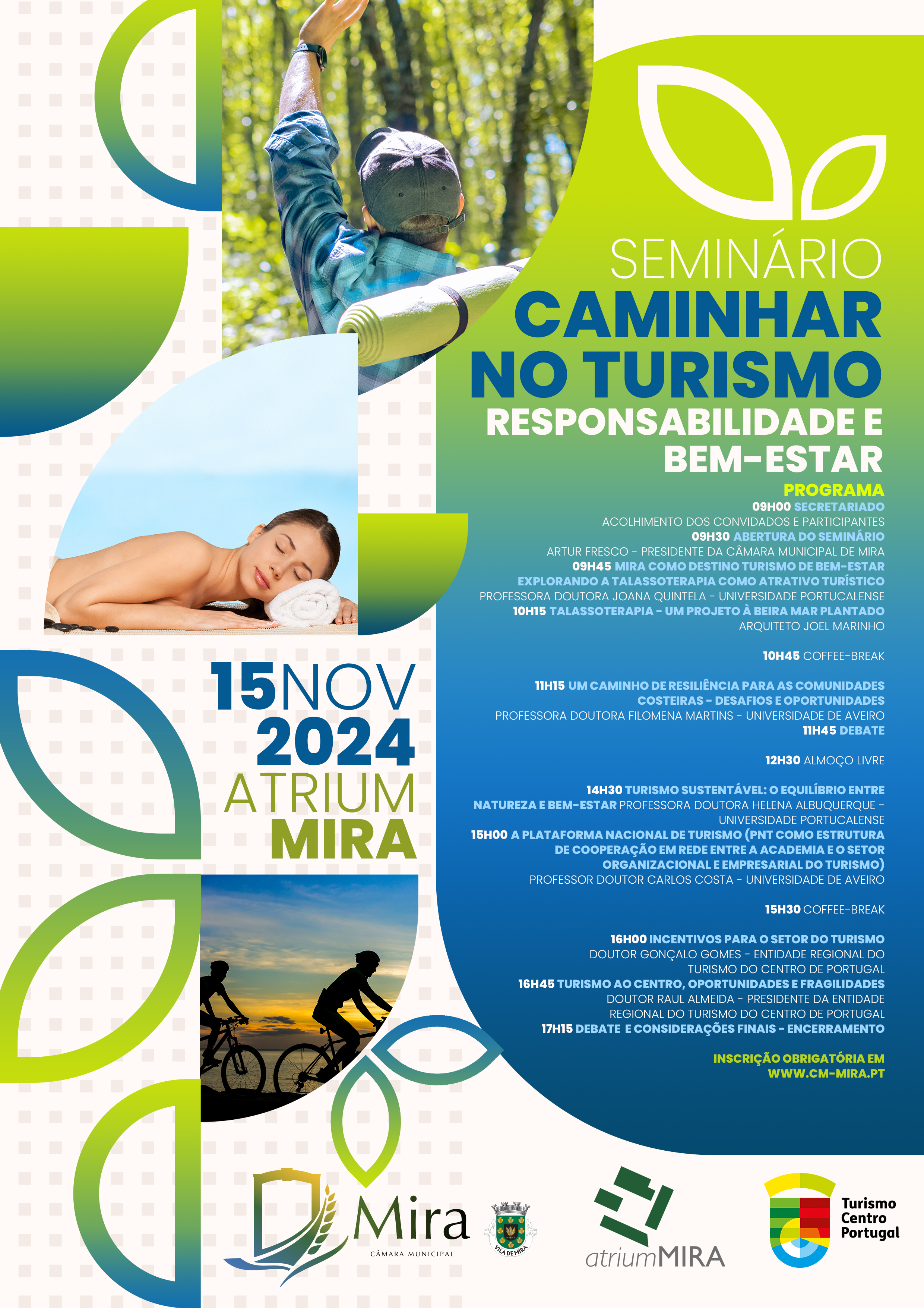 Mira, com as suas paisagens costeiras e património cultural, é um destino privilegiado cuja popularidade crescente reforça a necessidade de uma gestão turística responsável, que preserve o ambiente e contribua para o bem-estar da população. Assim, este seminário surge como um espaço de discussão e partilha de soluções práticas sobre o caminho a percorrer por forma a tornar a região um destino turístico sustentável dedicado à saúde e bem-estar.
