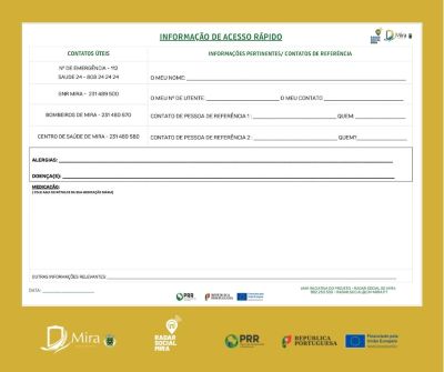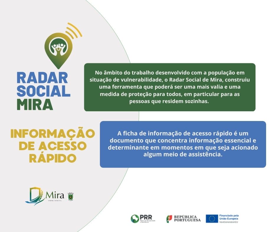 O Radar Social de Mira, no âmbito do seu compromisso com a população em situação de vulnerabilidade, apresenta a Ficha de Informação de Acesso Rápido, uma ferramenta essencial para a proteção e segurança de todos, especialmente daqueles que residem sozinhos.