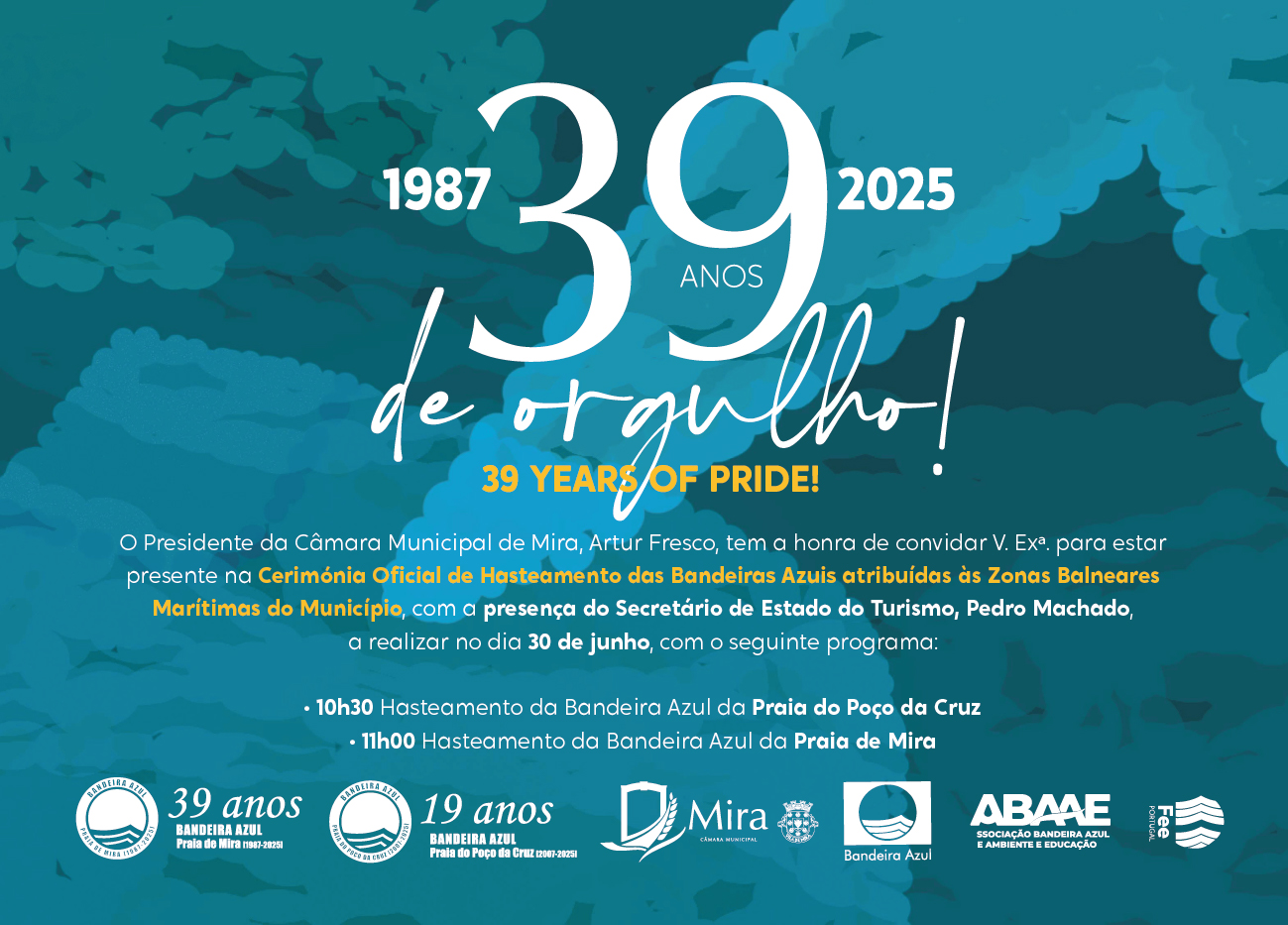 O Presidente da Câmara Municipal de Mira, Artur Fresco, convida toda a comunidade a participar neste momento de celebração, que simboliza o reconhecimento do trabalho conjunto em prol da excelência ambiental das praias do concelho.