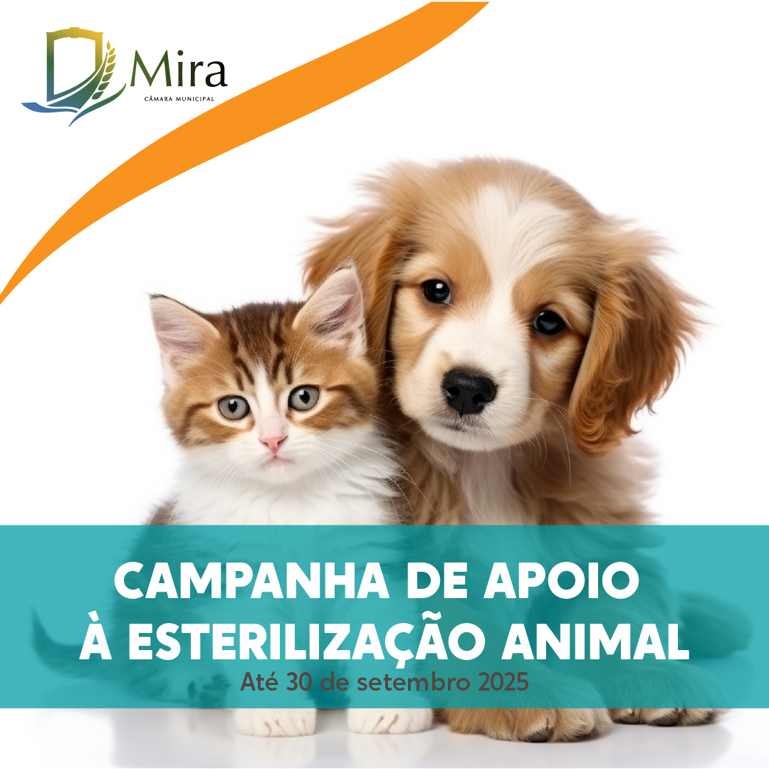 A Câmara Municipal de Mira informa que se encontra a decorrer, até 30 de setembro de 2025, a Campanha de Apoio à Esterilização de Animais (cães e gatos), dirigida a todos os munícipes com residência no concelho de Mira.