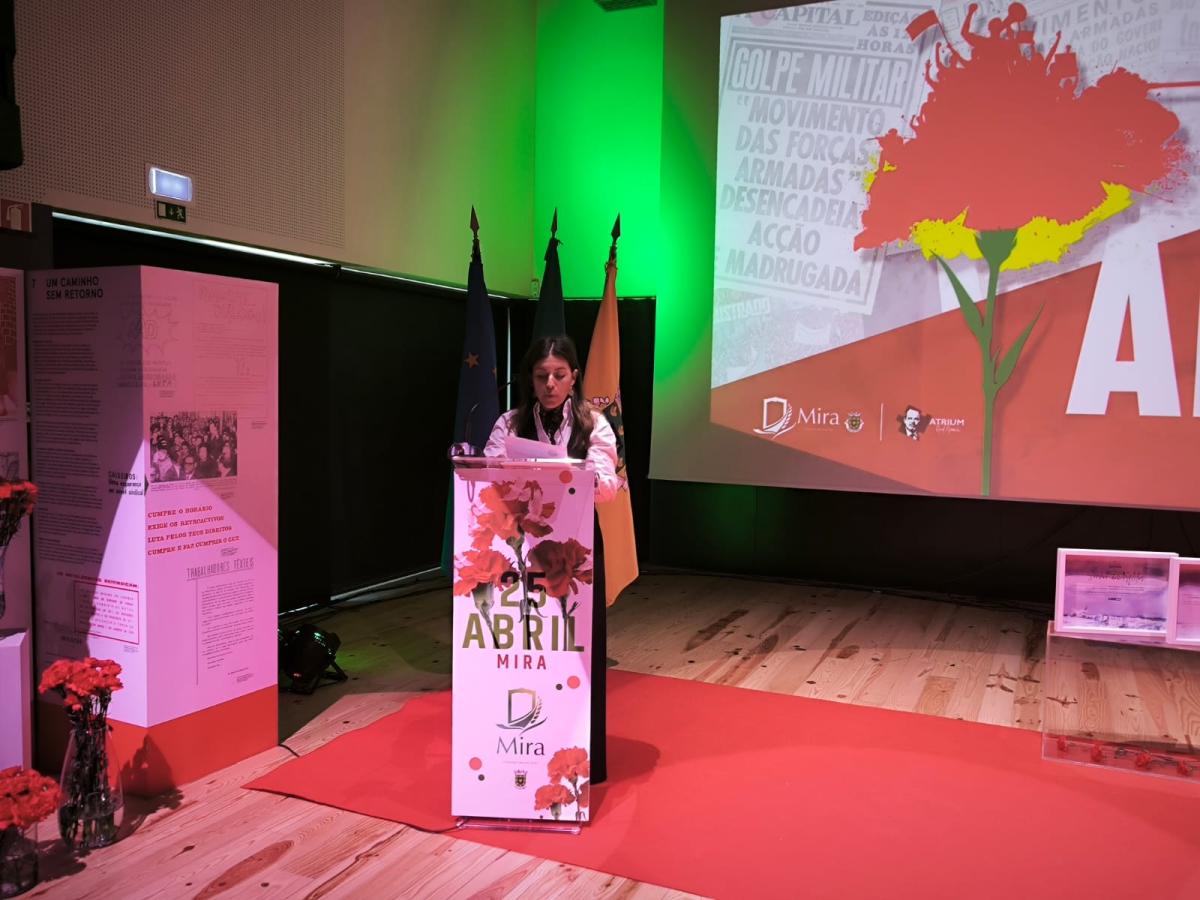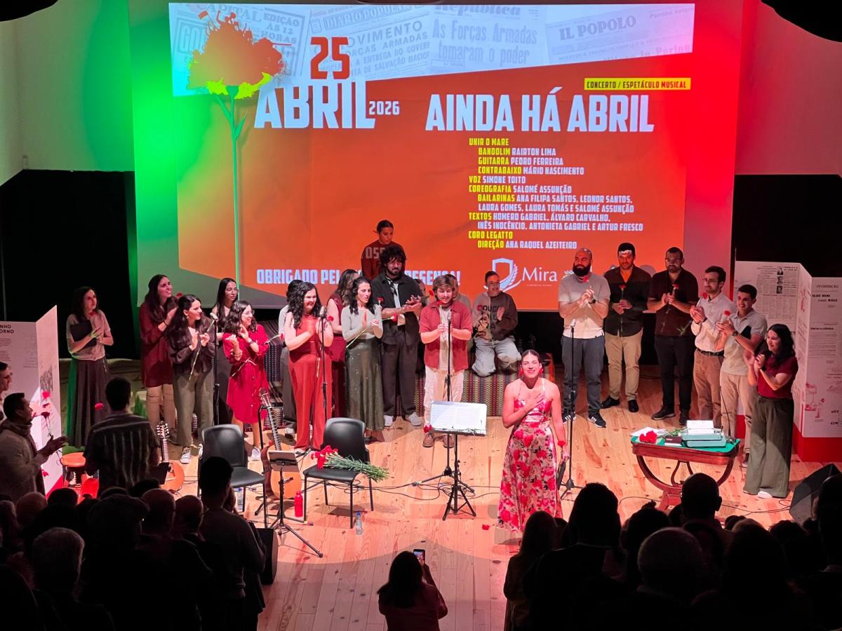 As festividades culminaram com o espetáculo musical “Ainda há Abril!”, no Atrium Raul Almeida. Em palco, o Coro Legatto, o projeto Unir o Mare com Simone Toito e Salomé Assunção celebraram os valores da revolução, unindo a comunidade em torno da liberdade e da identidade coletiva de Mira.