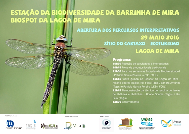 O Presidente da Câmara Municipal de Mira, Dr. Raúl de Almeida e a coordenadora da projeto das Estações da Biodiversidade, Dra. Patrícia Garcia Pereira, têm a honra de convidar todas as pessoas interessadas para a inauguração da Estação da Biodiversidade da Barrinha de Mira e do Biospot da Lagoa de Mira –, que decorrerá no dia 29 de maio, pelas 10h30m, no Sitio do Cartaxo – Ecoturismo, na margem nascente da Lagoa de Mira.