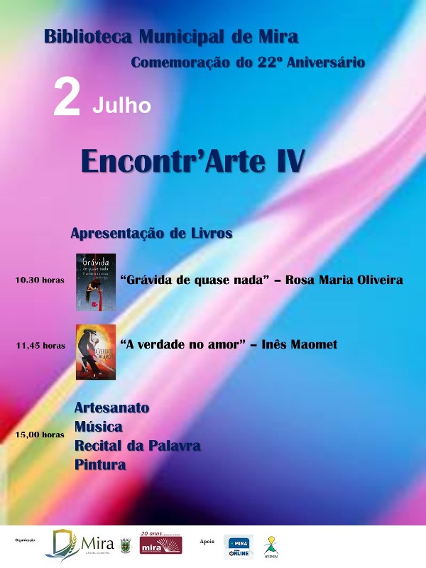 A Biblioteca Municipal festeja o seu 21º Aniversário com a realização da IVª edição do “ENCONTR’ARTE “, que decorrerá no próximo dia 2 de Julho, a partir das 10.30 horas.