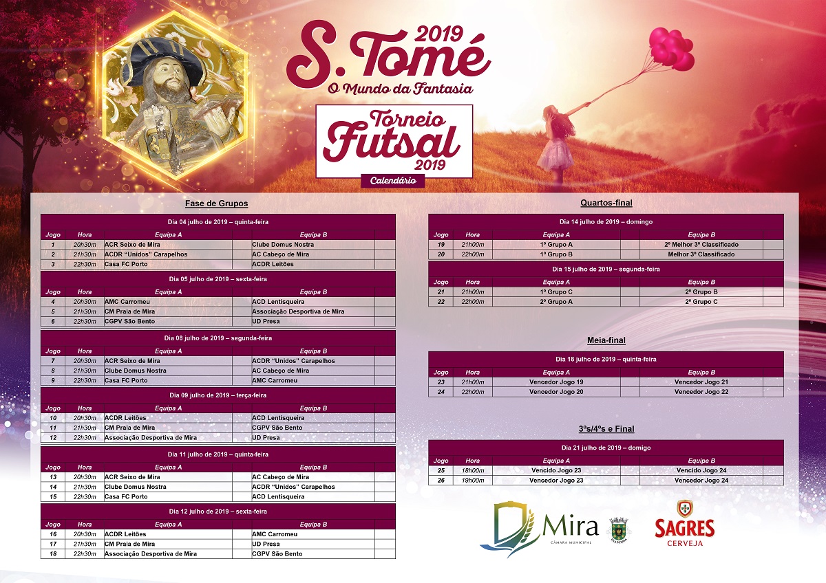 No âmbito das comemorações em honra do São Tomé, Padroeiro de Mira, realizar-se-á, mais uma vez, o Torneio de Futsal.