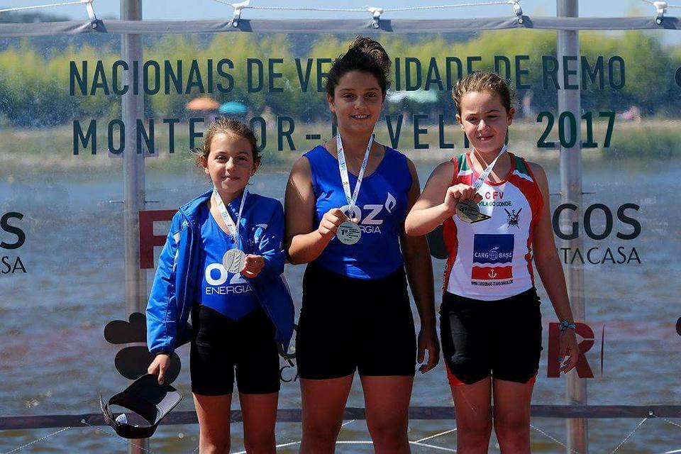 No remo jovem, Beatriz Oliveira também sagrou-se campeã nacional em skiff benjamim, sendo acompanha, no pódio, pela Joana Fernandes, na segunda posição.