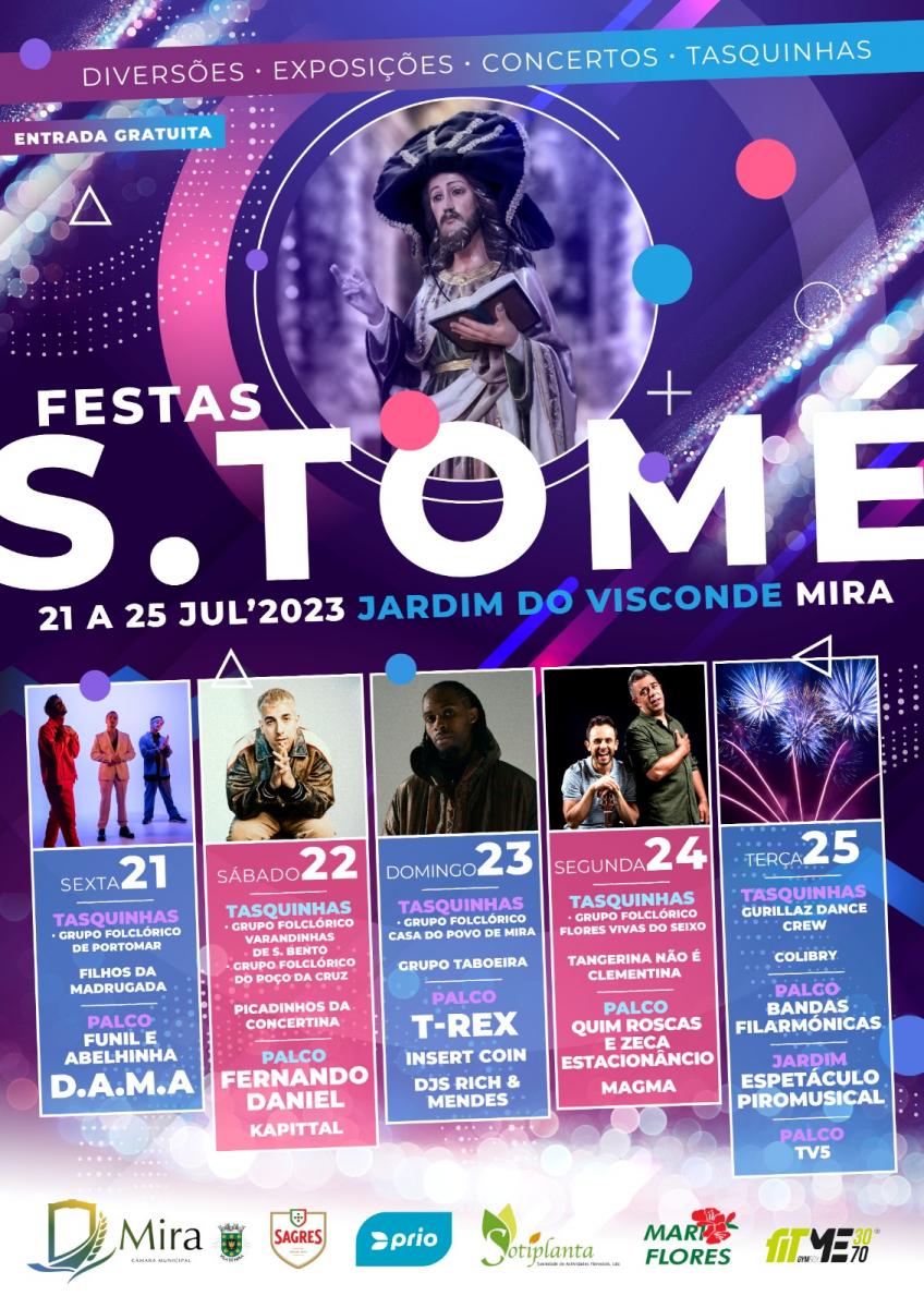 Em 2023, as Festas de S. Tomé vão realizar-se de 21 a 25 de Julho, no Jardim do Visconde, tendo como objetivos: